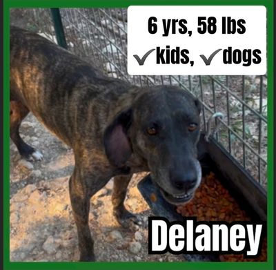 She's now available for adoption. She has been spayed, vaccinated, heartworm tested negative, & microchipped. She's current on monthly preventions. She's at a healthy weight now at 70 lbs & she's estimated to be 5 yrs of age.