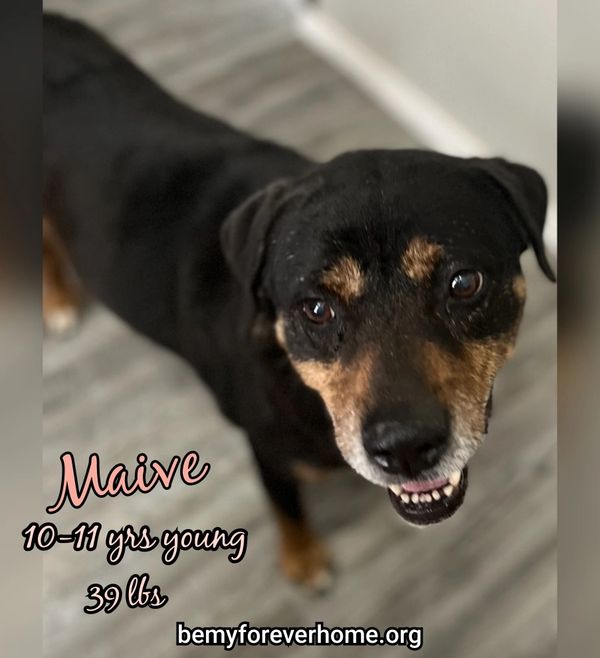 This beautiful girl is Maive & she's in need of a forever home. She's a wonderful dog in SO MANY ways. Maive is a delight to be around. She's laid back & friendly to everyone she meets. She's has the house manners of a mature lady, yet she's still young at heart. She's happy when making new friends, but she doesn't jump up on anyone. Maive is housetrained & doesn't mind spending time in a crate whenever necessary. She enjoys going for car rides. Even though she's only 39 lbs, she has a strong pull on a leash when she sees someone she'd like to meet. She very much enjoys the company of another dog & she absolutely adores people of all ages! She's so incredibly sweet!🩷