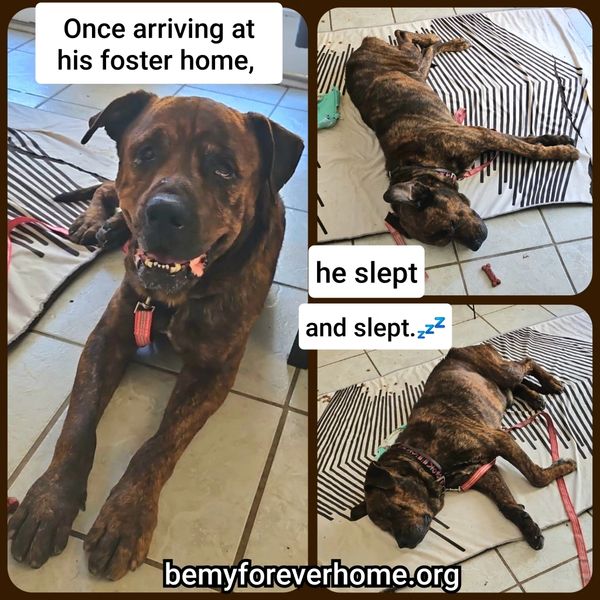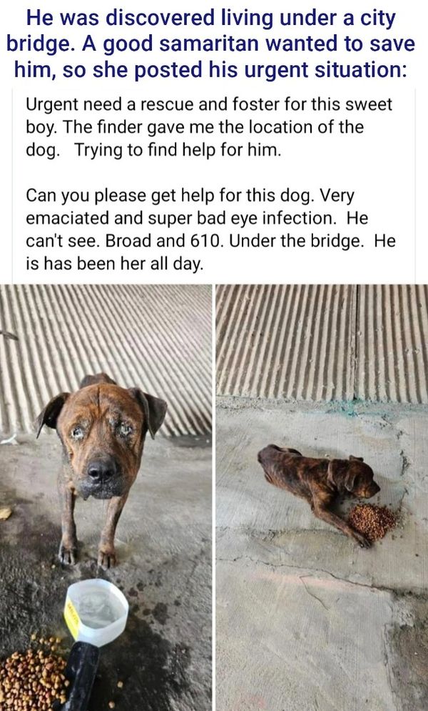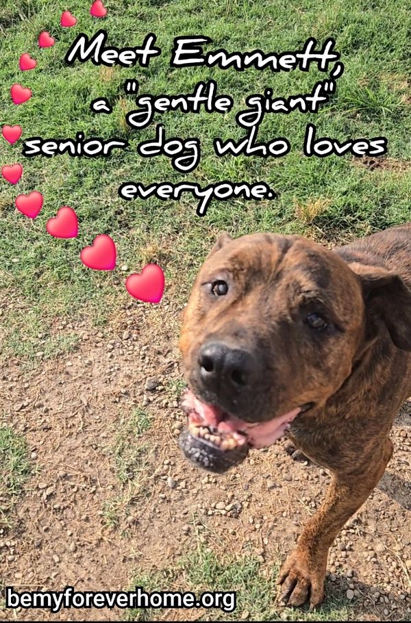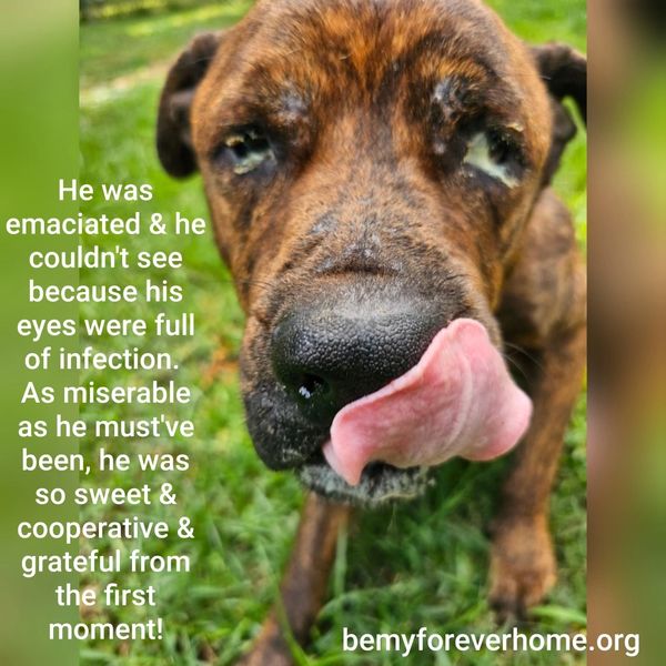 Emmett is a "gentle giant" senior dog who loves everyone. He was discovered living under a bridge in downtown Houston. He was emaciated & he couldn't see as his eyes were full of infection. A good samaritan wanted to save him, so she posted his urgent situation. Once I saw the post I knew I had to do something, so I reached out to her.