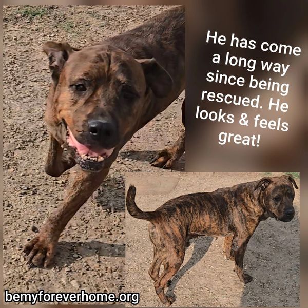 Once transported to DFW, he received further vet care. After his weight was up & he was feeling good, he was neutered. His eyes & skin cleared up & his coat became shiny & soft. He tested heartworm + & he's been on the "slow kill" treatment thus far. His x-ray showed a bullet in one of his legs. It doesn't bother him, but it's infuriating to know someone shot this gentle angel of a dog.